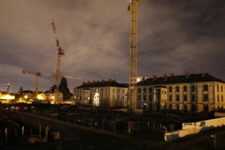Nous avions envie de travailler sur des déambulations guidées qui prendraient la forme d’une exploration cinématographique. Une ville, un quartier, un village, un chantier, une friche, autant de lieux qui deviennent des décors dans lesquels se joue un plan séquence, un tournage de cinéma dans lequel la caméra est remplacée par la vision du spectateur. Le scénario est toujours le même, un mystérieux personnage habite un territoire, et erre chaque soir à la manière d’un veilleur de nuit. L’écriture du plan séquence qui se joue en direct est protéiforme. Nous fabriquons des images cinématographiques, des cadres imaginaires, composés par de la lumière mouvante en direct, des vidéoprojections, des tableaux vivants. La bande-son est quant à elle diffusée par des casques sans fil, qui plongent le spectateur dans les différents plans sonores du film. Du son direct capté par un perchman, une voix, celle des pensées du personnage, des ambiances qui peuplent ou détournent les lieux visités, de la musique qui souligne ou dramatise les actions. Autant d’éléments qui vont permettre au spectateur de basculer dans le récit en oubliant l’équipe technique qui s’agite et compose le film en direct, comme il oublierait des marionnettistes à vue.
