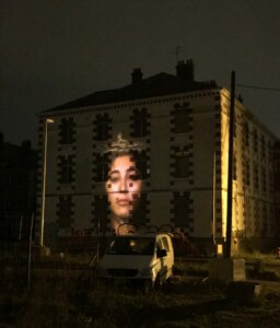 Espèces d’Espaces projette en grand format les visages et corps de ceux qui habitent la ville. A la nuit tombée, chaque bâti, mur ou paysage devient surface de projection à ciel ouvert.