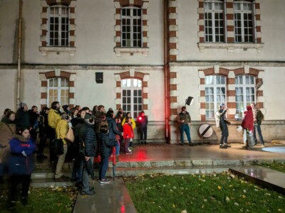 – Restitution : déambulation spectaculaire nocturne, guidée et théâtralisée sous casque.
